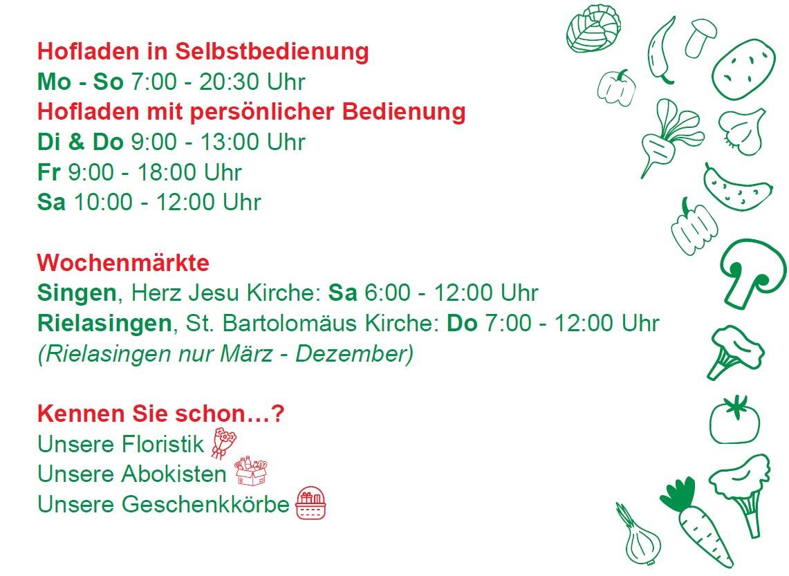 => Rielasingen an der St. Batolomäus Kirche jeden Donnerstag von 7:00- 12:00 Uhr